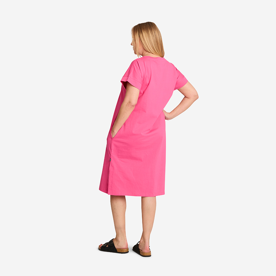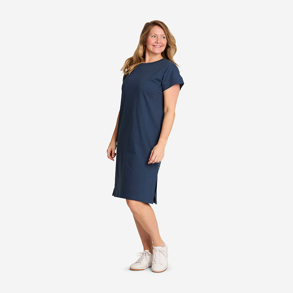 Tillbaka till butikenKlänningen som låter enkelheten tala. Denna mjuka och följsamma sommarklänning i knälång modell är designad i 100 % bomull och har en avslappnad passform som ger dig full rörelsefrihet under varma dagar. Bär den hemma i trädgården, som en ledig strandklänning eller styla den med sneakers och en snygg väska för en enkel och stilren vardagslook. Helt enkelt en avslappnad favorit för sommarens alla tillfällen.