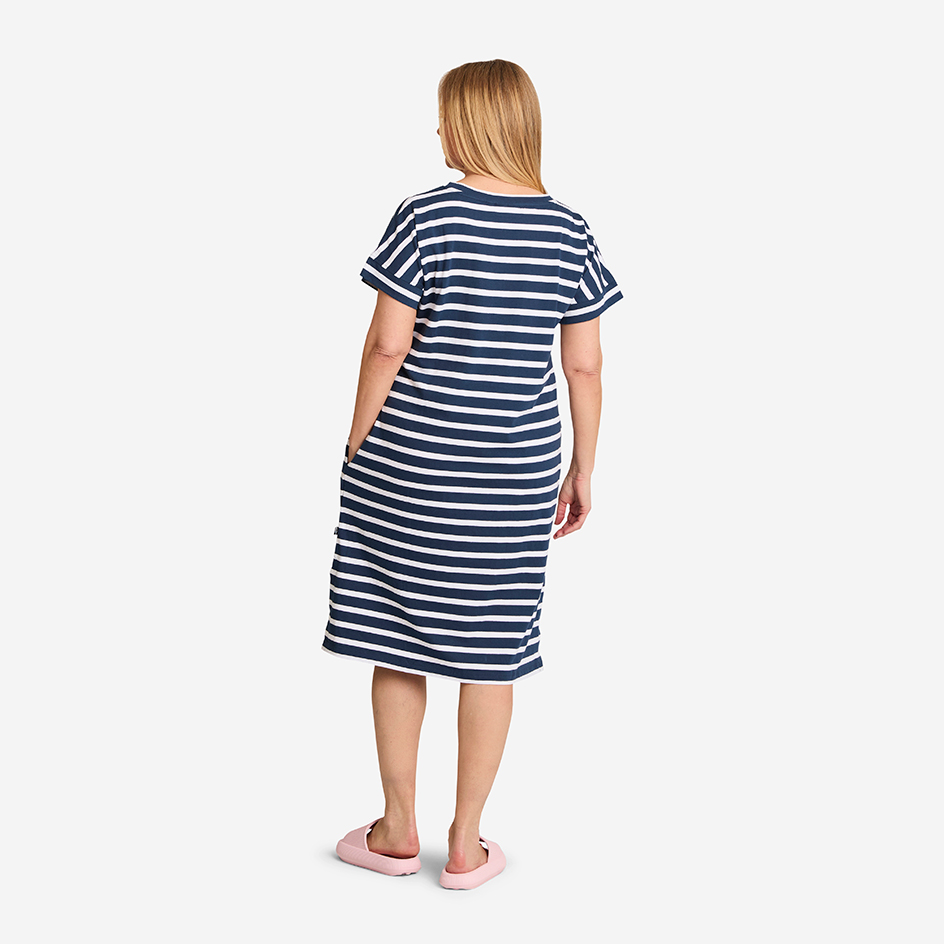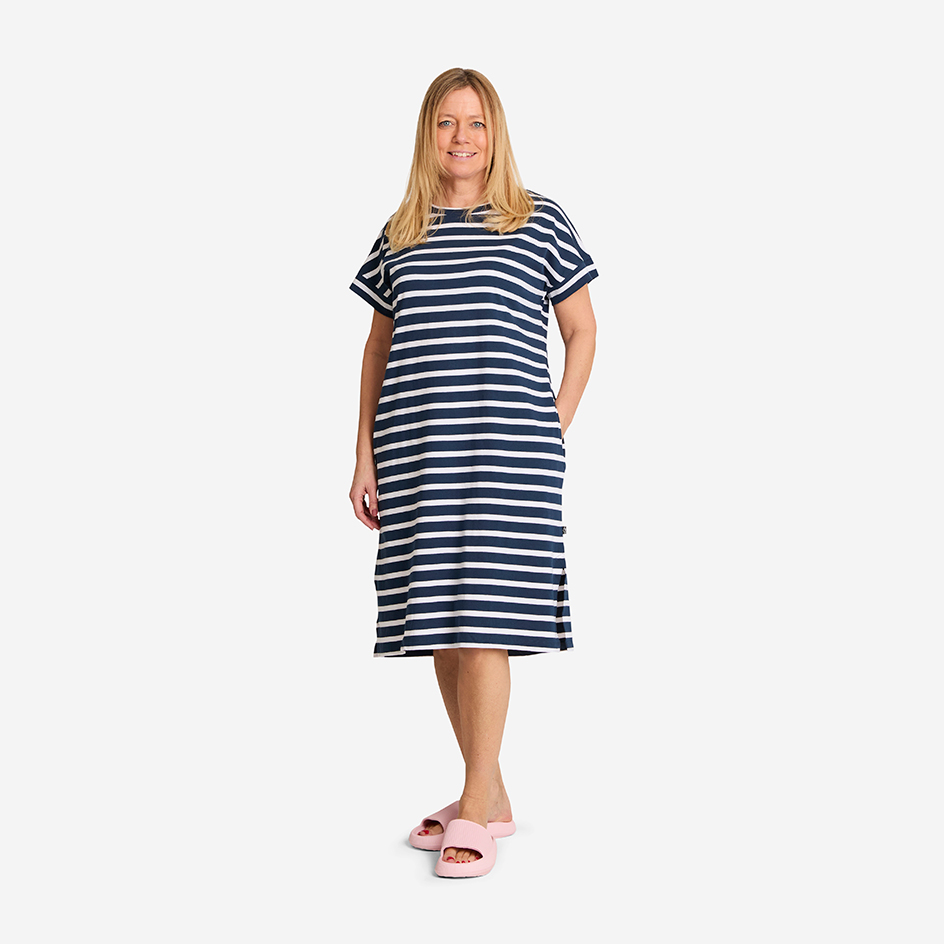 Egenskaper: Sommarklänning i 100 % bomull med mjuk och behaglig känsla mot huden. Klänningen har rund halsringning, kort ärm och två öppna sidofickor. Den avslappnade passformen gör den till ett bekvämt och lättburet plagg för varma dagar.