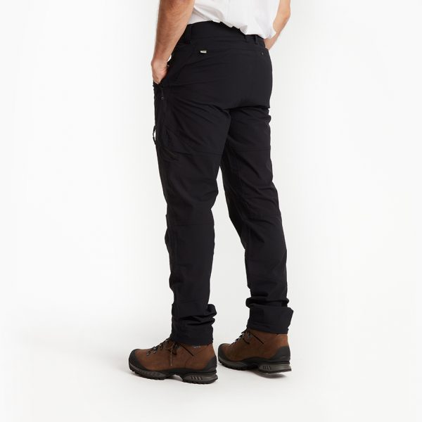 Det följsamma Polystretch tyget gör att du kan ta ut steget ordentligt och samtidigt inte bli för varm med sin goda andningsförmåga. Byxan passar för många olika kroppstyper tack vare det smidiga tyget. Byxan har en rak passform med förböjda knän och en dragsko i bensluten. Flexi har flera smarta fickor placerat på låren och midjan.