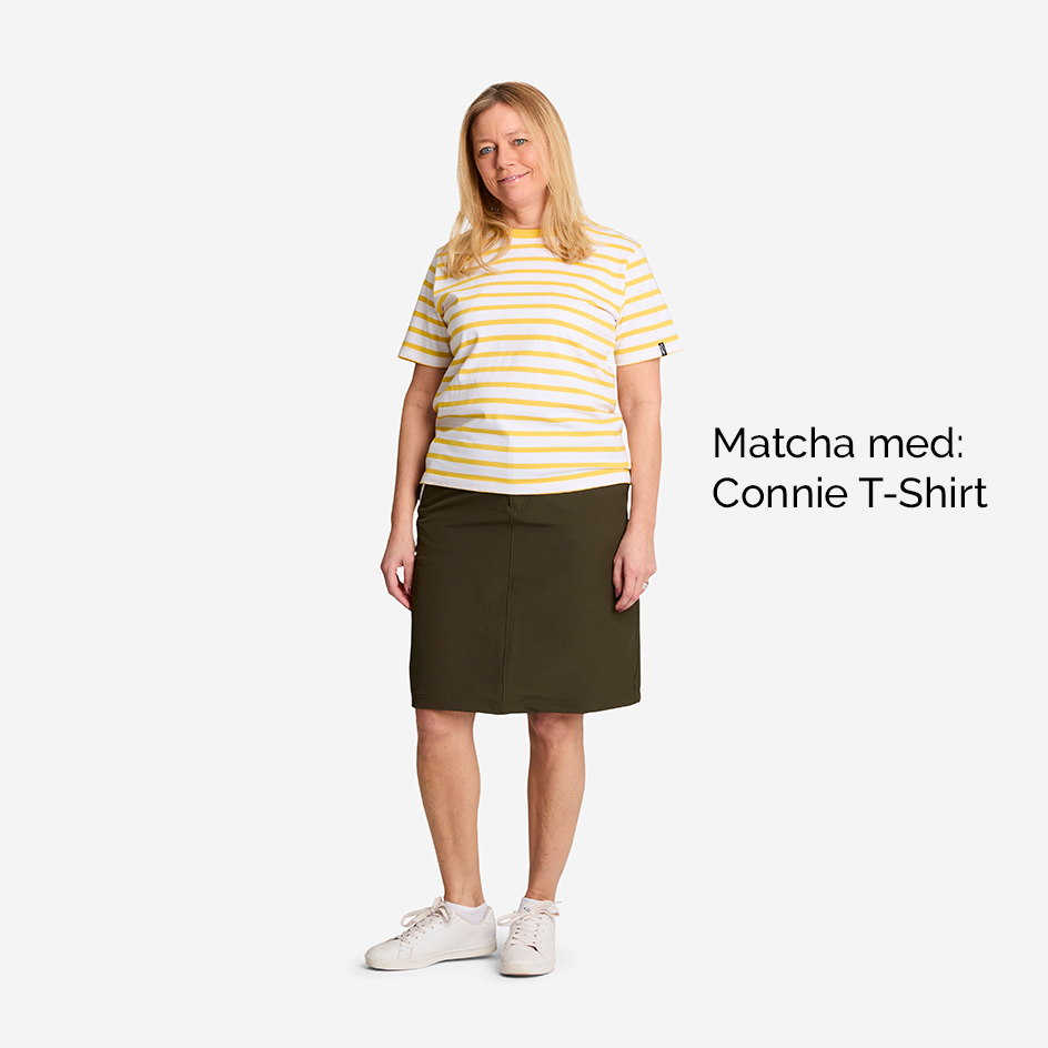 Egenskaper: Kjol med innerbyxa framtagen i vår Stretchlite Reco kvalitet – ett otroligt stretchigt och mjukt material. Material består till 92% av återvunnen polyester och 8% elastan. Modellen justeras enkelt med kardborrejustering i midjan. Dessutom finns flera rymliga fickor, både med och utan dragkedja. På innerbyxan finns en ficka perfekt för mobil eller mindre värdesaker.