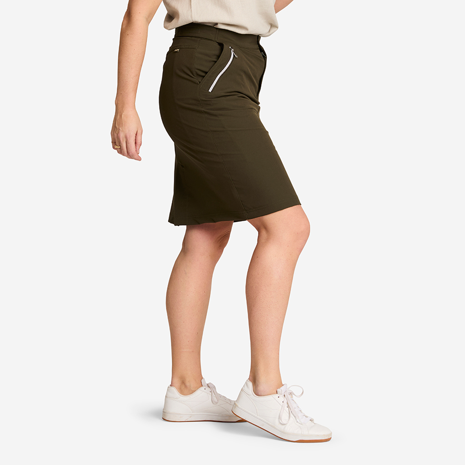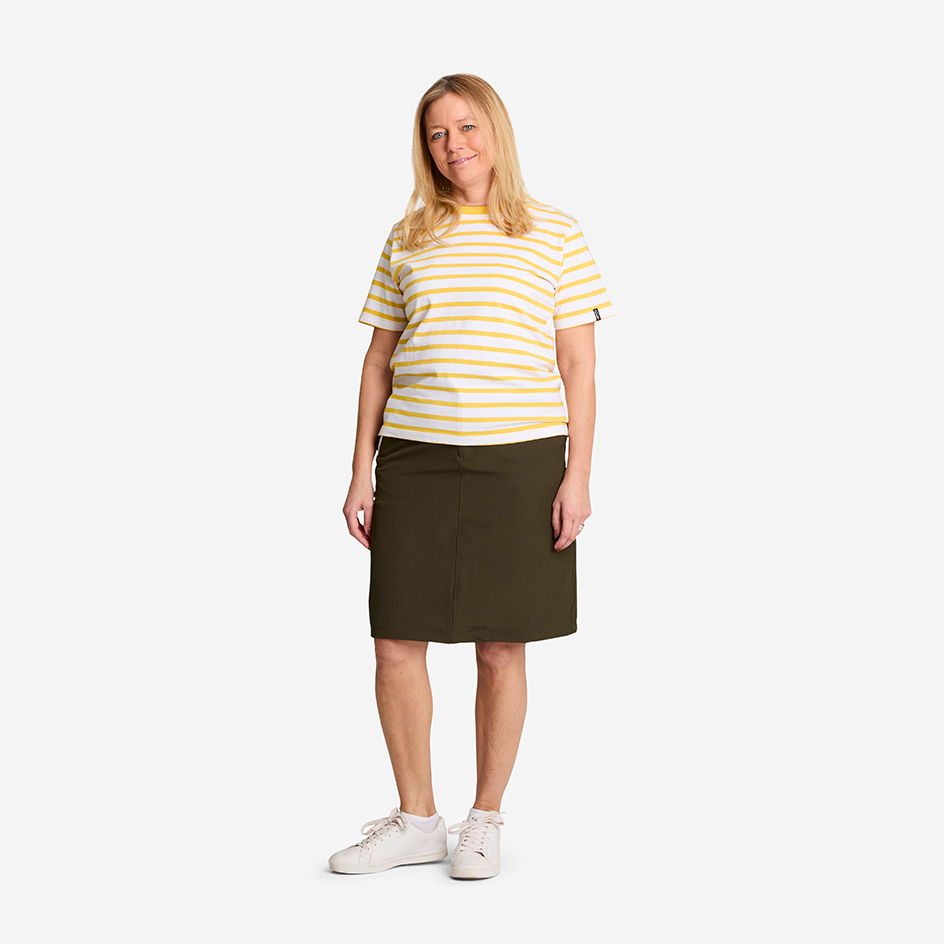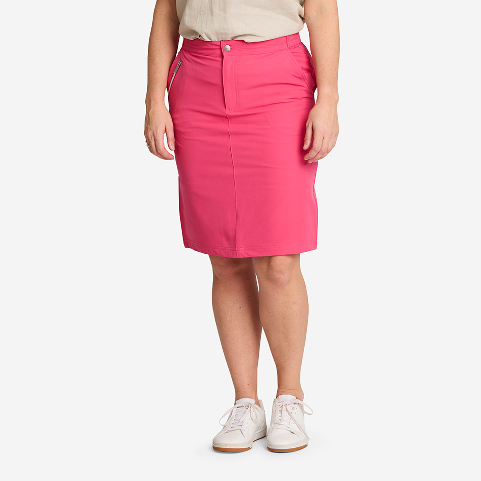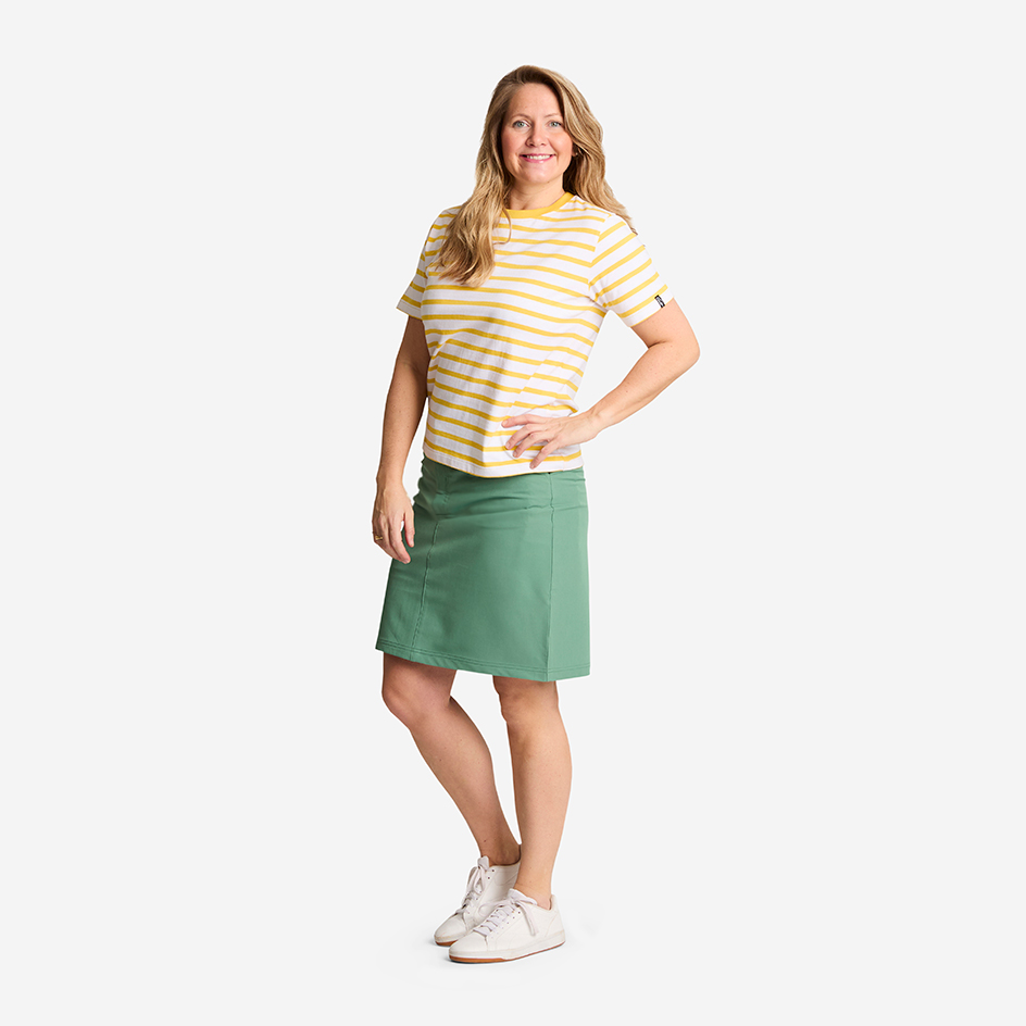 Egenskaper: Kjol med innerbyxa framtagen i vår Stretchlite Reco kvalitet – ett otroligt stretchigt och mjukt material. Material består till 92% av återvunnen polyester och 8% elastan. Modellen justeras enkelt med kardborrejustering i midjan. Dessutom finns flera rymliga fickor, både med och utan dragkedja. På innerbyxan finns en ficka perfekt för mobil eller mindre värdesaker.