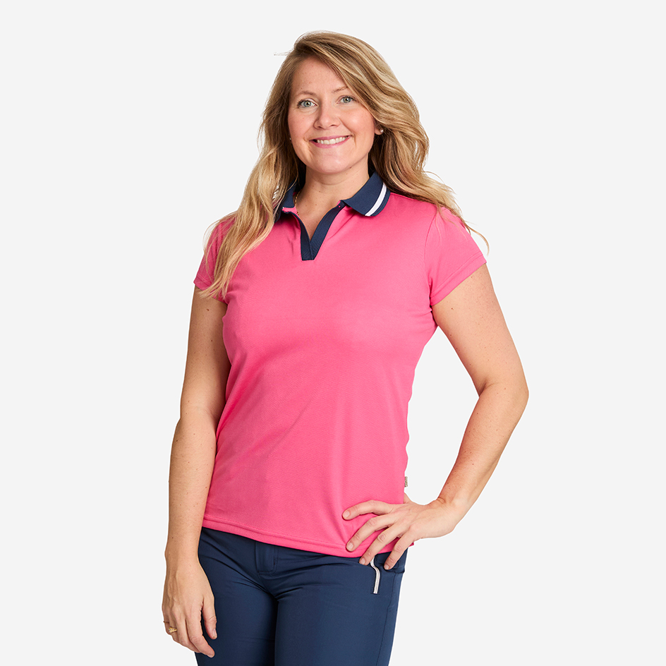 Denna lite sportiga pike blev snabbt en kundfavorit förra sommaren! Och nu är den tillbaka i nya färger. Med ett stretchigt, följsamt och dessutom återvunnet funktionsmaterial är denna piké ett självklart val till sommargarderoben.