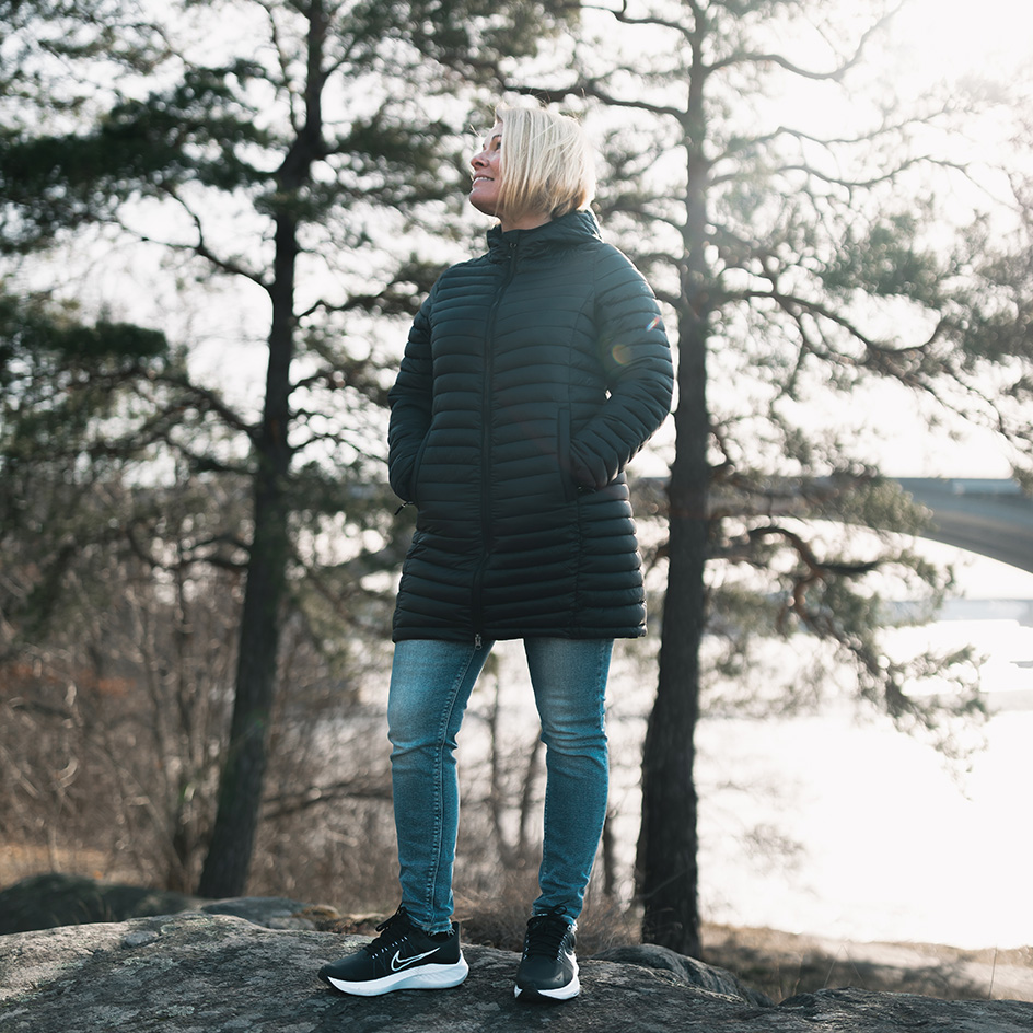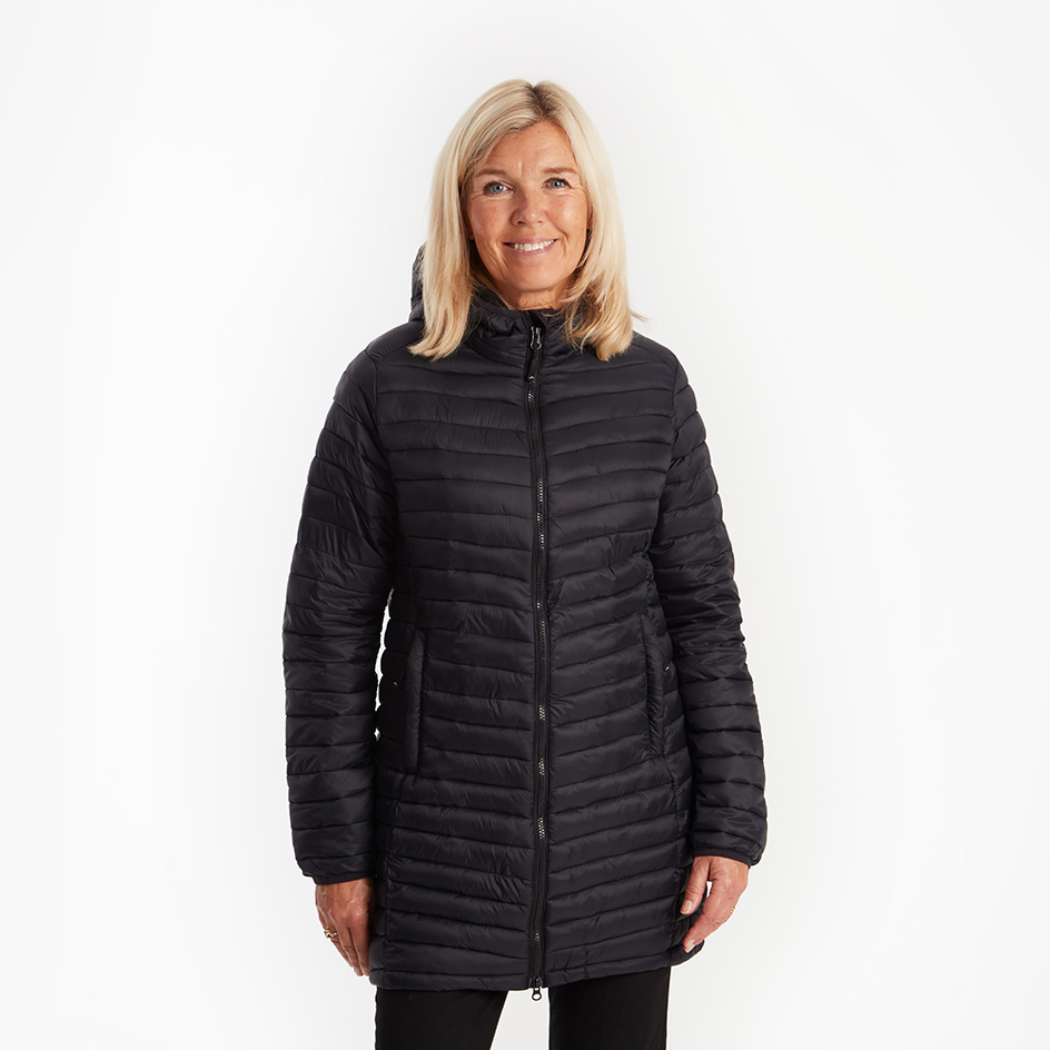 Lena coat är en lättviktsjacka till dam framtagen i en längre modell. En jacka som fungerar under många säsonger tack vare sin längre modell och lagom varma fyllning.