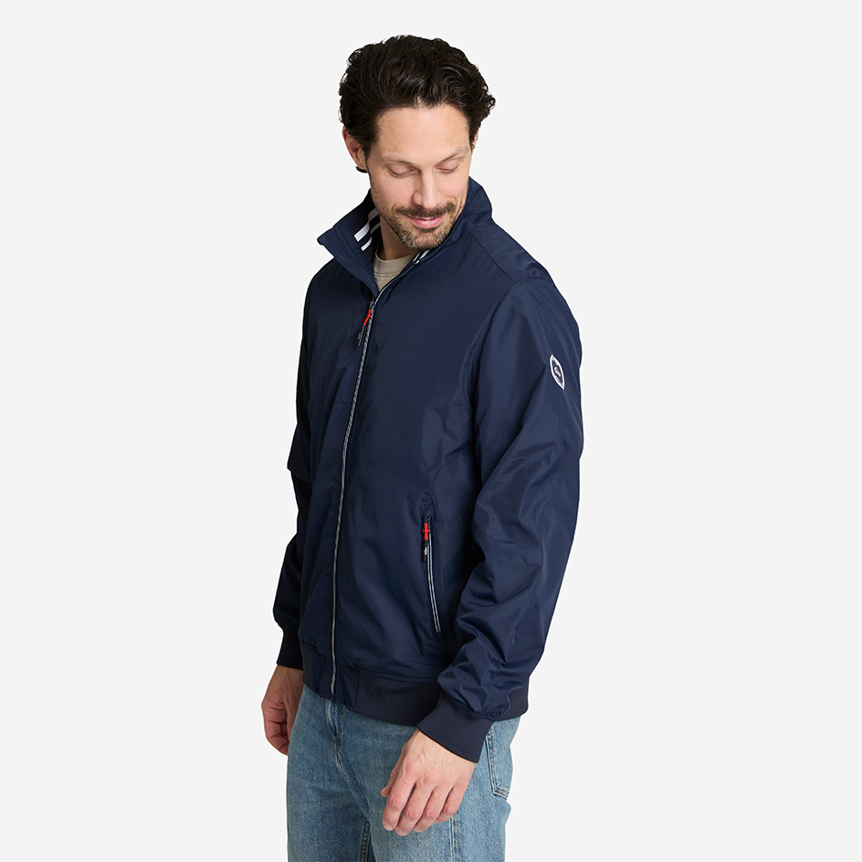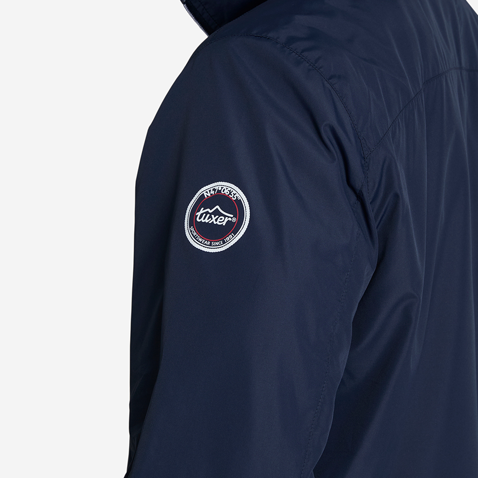 Egenskaper: Vindjacka i 100% polyester och meshtyg på insidan. Jackan är lätt vind- och vattenavvisande och har ribbade resårdetaljer vid ärmavsluten, i jackans nederkant samt på insidan av jackans krage. Det finns tre fickor med dragkedja, varav en innerficka och på jackans vänstra ärm finns en tryckt logga.