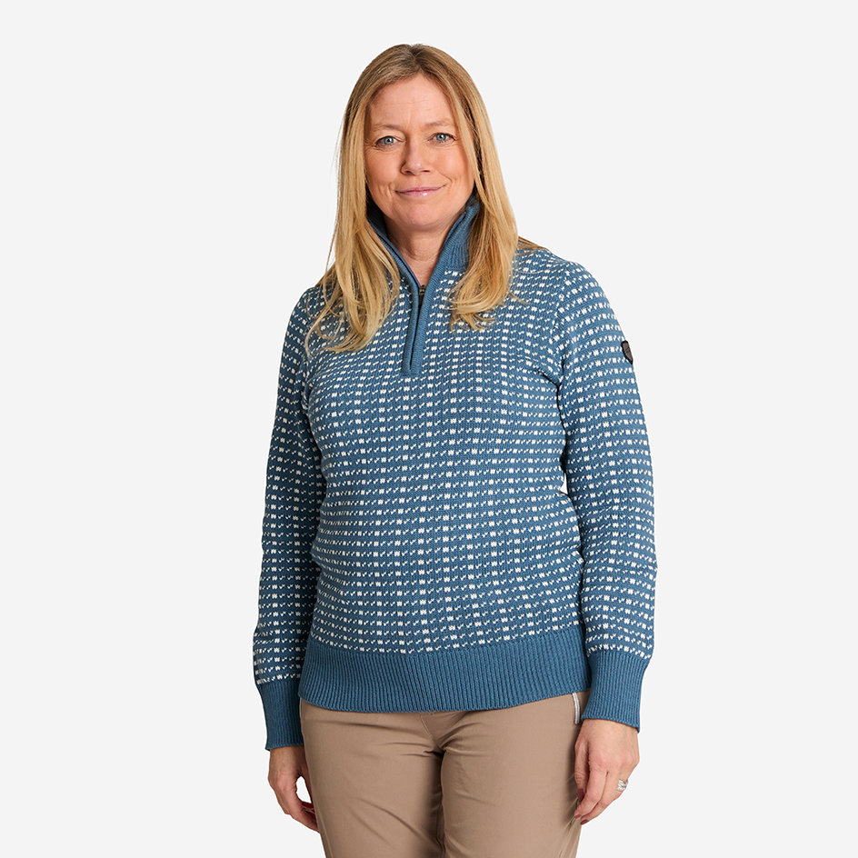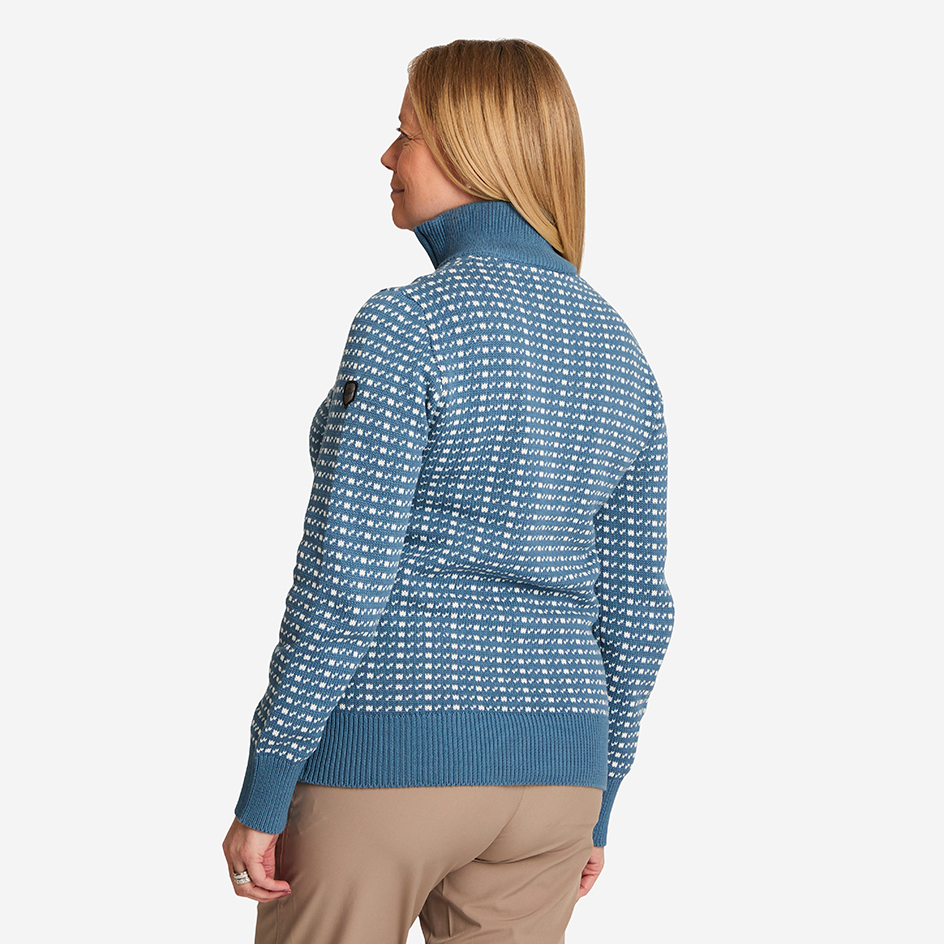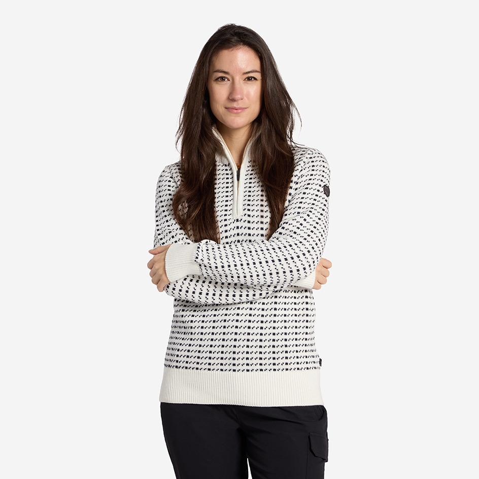 Scarlett Sweater är en mjuk och skön stickad tröja i 100 % bomull. Den ribbade kragen, muddarna och nederkanten skapar en snygg och välsittande passform – en perfekt tröja för kyligare dagar eller sommarkvällar.